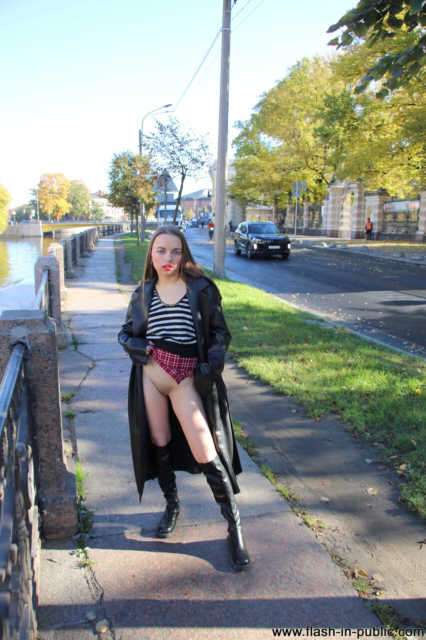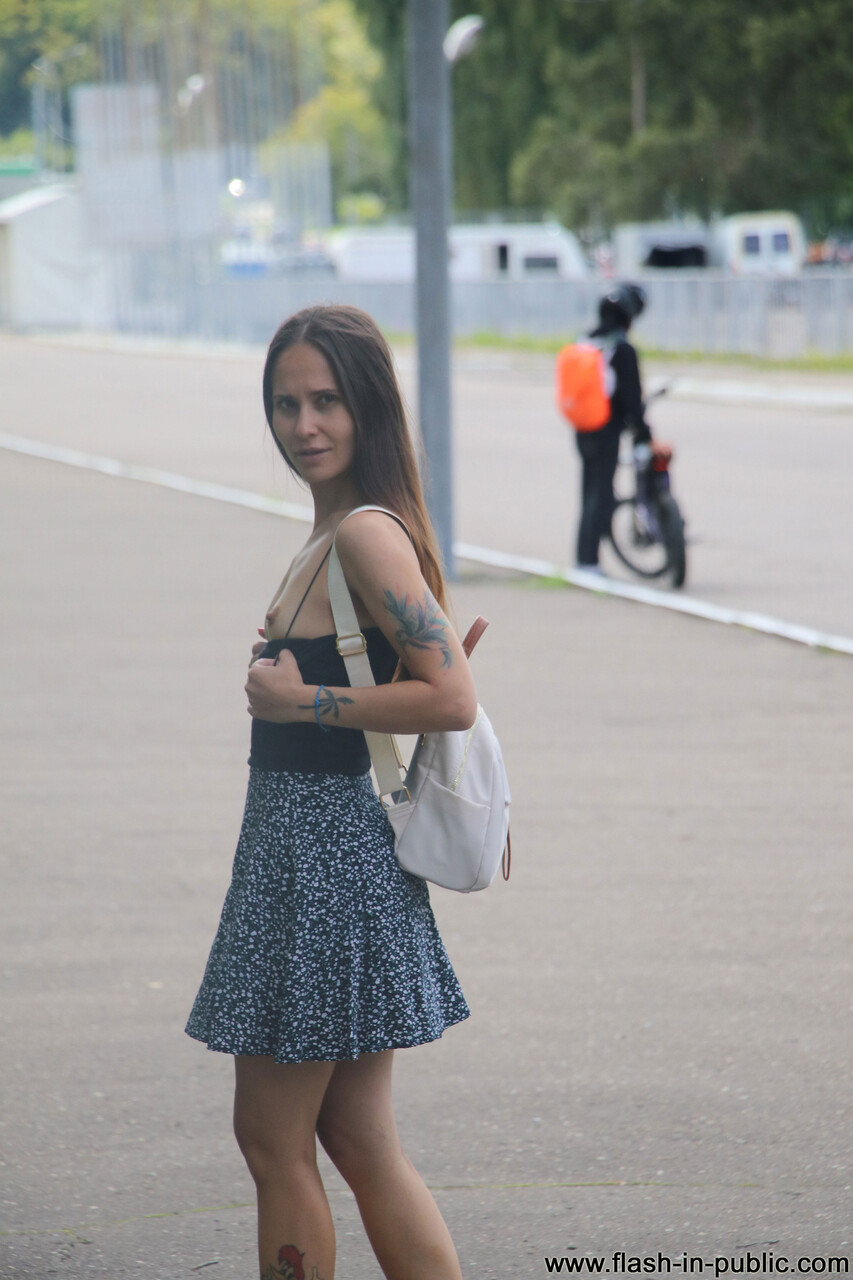 Flash In Public, like its name implies is all about public flashing, voyeurism, showing off and in some cases even full public nudity. In its base it caters to the subtle erotica of young and beautiful girls giving you erotic views of their bodies in public places. So it is our girls sharing this erotic secret with you through our lenses by opening their coats, pulling up their skirts or anything of the like, that people around do not necessarily know about. However there are many instances where -at first unsuspecting- bystanders did notice and depending on the girls' personality that caused her to either freeze, or to just get really fired up and provocatively showing off to them, which seems to be the case most of the times with our daring girls. At other times we had some really wild girls, who just enjoy to be in the center of attention and public flashing as well as everyone around enjoying the views of their nude bodies just appears to be all they ever wanted.