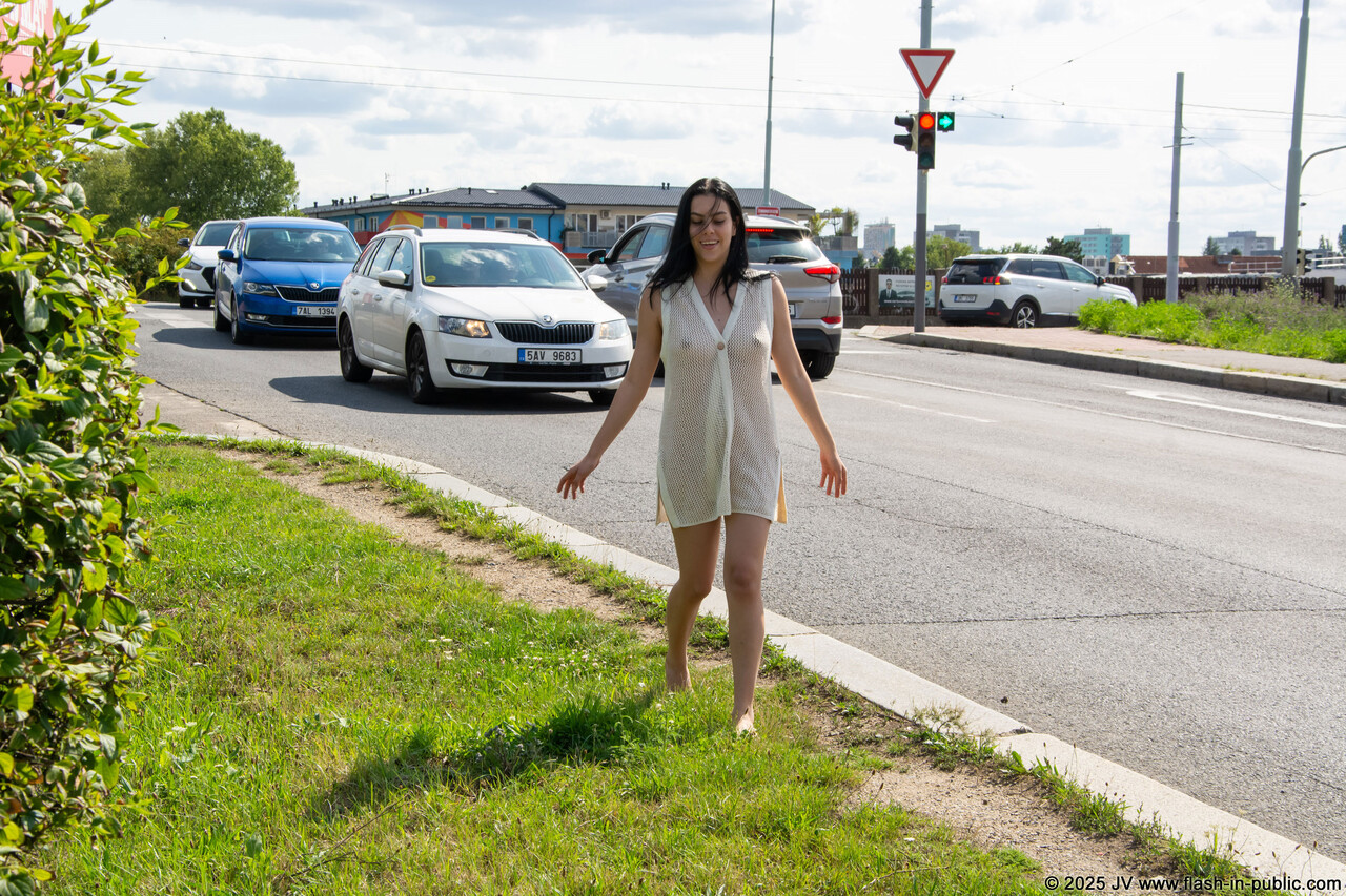 The main focus of our site is always to have fun and to make sure our girls enjoy public flashing and showing off as well, besides some cases where we were playfully pushing the embarrassment limits of some girls. At times one has to be a bit bas as well, right? However we do care a lot for our girls and are always making sure that they are safe and really having a blast. Another new twist was the introduction of transparent clothes' series, which we do on occasion, being one of our valued members suggestions, where all the girl wears is a 'sweet see-through nothing', sexy underwear, or clothes we cut holes at revealing places in, giving bystanders the light bulb moment of: "Oh, you can actually see through this ...!". As you can see public flashing, like any other fetish or erotic play to us has many facets and we play them all ...
